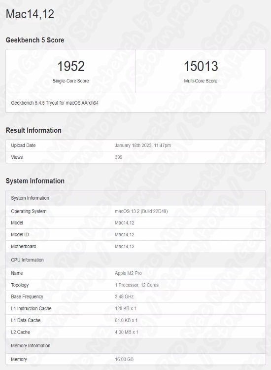 ↑ M2 Pro Mac Mini Geekbench 5 image