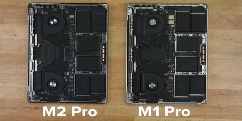↑ There are hardly any differences on the insides between the previous-generation 14-inch MacBook Pro and the M2 Pro version