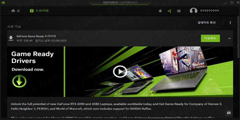 NVIDIA GeForce Game Ready Driver 528.49 드라이버 업데이트는 2023년 02월 08일 (EDT) 업데이트가 진행되었습니다. 이 업데이트는 NoteBook (노트북) 에 들어가는 NVIDIA GeForce RTX 4090 , NVIDIA GeForce RTX 4080 , NVIDIA GeForce 4000 Series 에 맞춘 최신 업데이트 입니다.