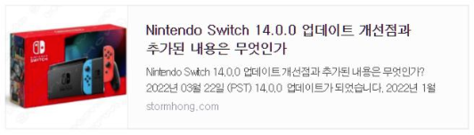 ↑ 공식 홈페이지 Nintendo Switch firmware update (펌웨어 업데이트) 내용