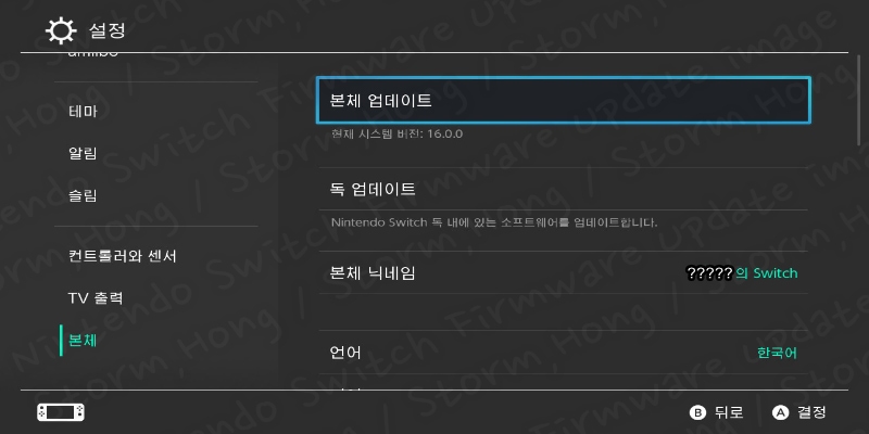 ↑닌텐도 스위치 펌웨어 업데이트 13.0.0 이 업데이트된 화면