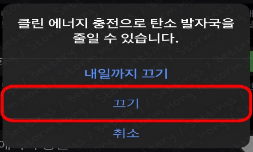 5. ↑ 클린 에너지 충전 (Clean Energy Charging - 청정 에너지 충전) 옵션에서 녹색 부분을 눌러 주면 ↓ 아래와 같은 화면이 나타납니다.