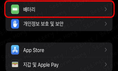 2. 배터리 옵션을 찾아 눌러 줍니다.