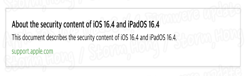 * 업데이트 진행 일시 -> iOS 16.4 ( 2023년 03월 27일 (EDT) ), iPadOS 16.4 ( 2023년 03월 27일 (EDT) )