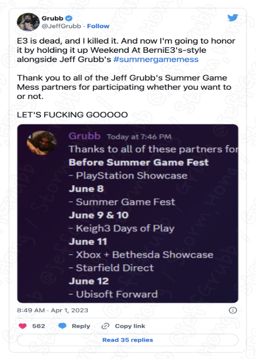 물론 오는 2023년 4월 1일 GRUBB 에 대해 정보 및 어떠한 것도 없을 수 있다는 정보가 나타났으며, 이는 Grubb 에 의한 예상, 예측은 빗나가지 않았습니다. 작년 Sony Showcase 에서 키글리의 Summer Game Fest 2022 는 2022년 6월 초에 열렸습니다. 따라서 소니에서 다가오는 Spider Man 2와 곧 출시될 Nutty Dog 독립 실행에 Multi Play Title 에 대한 필요한 정보에 대해 더 많이 보여 줄 것이라는 논리적인 정보가 나타났습니다.