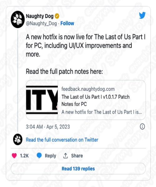 Naught Dog 에 대한 팀은 현재 PC 에서 사용할 수 있는 핫픽스와 함께 새로운 패치를 발행하고 있었습니다.