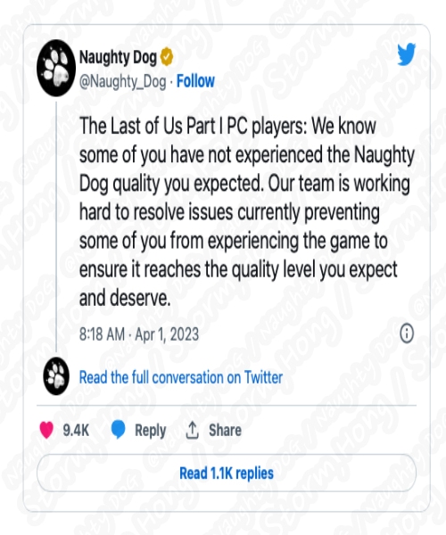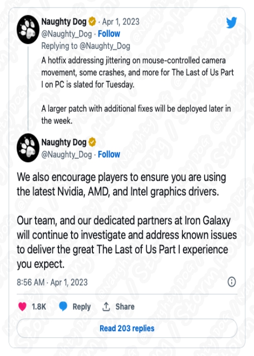 또한 AMD NVIDIA 양측 모두 발생ㅇ하는 문제이지만 Naughty Dog 의 트윗 정보에 따르면 다음과 같은 정보가 나타났습니다. 또한 포트는 다소 서툴렀을 수 있다는 정보도 함께 나타났습니다.