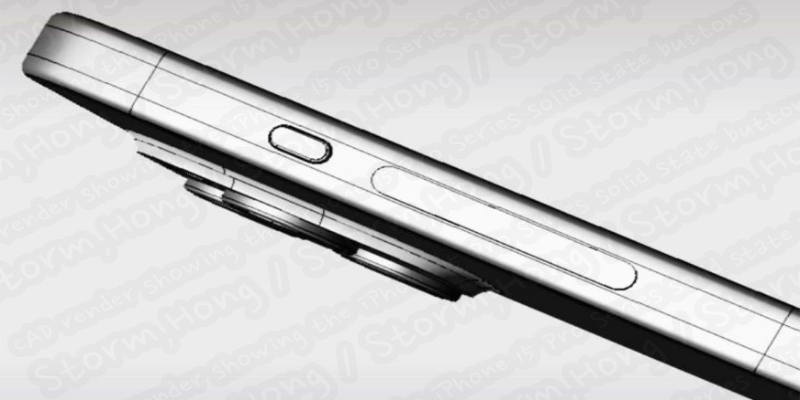↑ CAD render showing the iPhone 15 Pro and iPhone 15 Pro Max solid state buttons