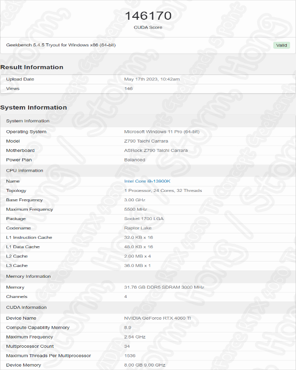 NVIDIA GeForce RTX 4060 Ti CUDA 벤치마크 점수가 나타났다? 그 내용은 무엇인가?