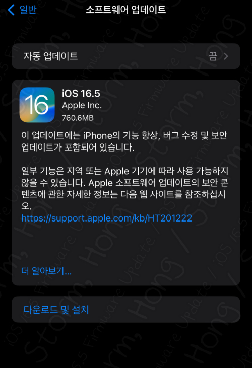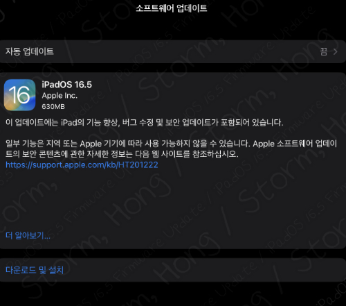 지난 iOS 16.4.1 (a) , iPadOS 16.4.1 (a) 업데이트는 기본적으로 자동 업데이트가 iOS 16.4.1 , iPadOS 16.4.1 업데이트 이후 꺼짐으로 해두었다고 하더라도, 켜져 있어 자동 업데이트 및 다운로드 설치가 WiFi 연결 시 될 수 있습니다. 이점은 각별히 중요한 내용입니다. 따라서 업데이트 주요 내용과 목록이 나오지 않아도 긴급한 업데이트 일 수 있는 업데이트였습니다.