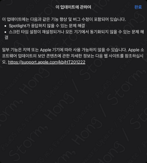 2023년 05월 18일 (EDT) iOS 16.5 , iPadOS 16.5 업데이트 되었습니다.