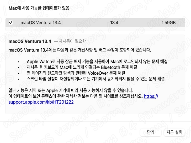 [ macOS Ventura 13.4 (맥OS 밴츄라 13.4) 에서 업데이트된 내용은 무엇인가? ]