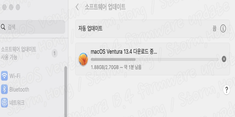 ↑ 기존 macOS Ventura 13.4 에서 설치 시작 시 실제로 위 사진처럼 2.07 GB 로 설치 용량이 늘어납니다. 따라서 설치가 덜되어 있는 분들은 더 클 수 있습니다. 따라서 macOS Ventura 13.4 업데이트 시에도 설치 공간은 예상치 보다 더 많이 필요할 수 있습니다.