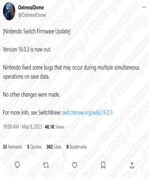 Nintendo Switch firmware ver 16.0.2 업데이트 이후 21일 만에 업데이트입니다. 2023년 05월 09일 (PST) firmware ver 16.0.3 업데이트가 되었습니다.