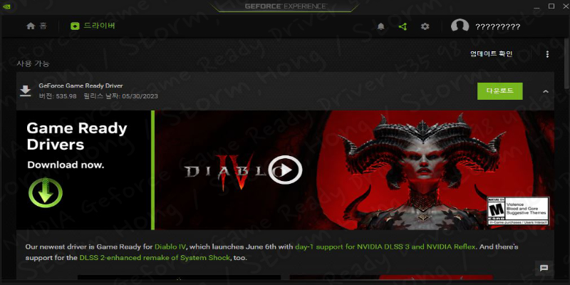 [ NVIDIA GeForce Game Reday Driver 535.98 WHQL Driver Diablo 4 성능 향상 외 업데이트 내용 ]