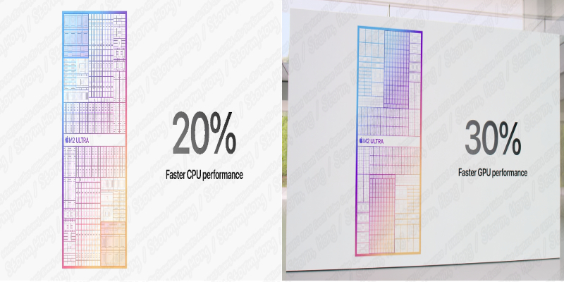그리고 많은 이들이 가장 많이 기다렸던 M2 Ultra Chip 을 가진 Mac Studio , Mac Pro 는 M1 Ultra 에 비해 "CPU 성능이 20 %, GPU 성능은 30 % 향상" 된 것으로 알려졌습니다.