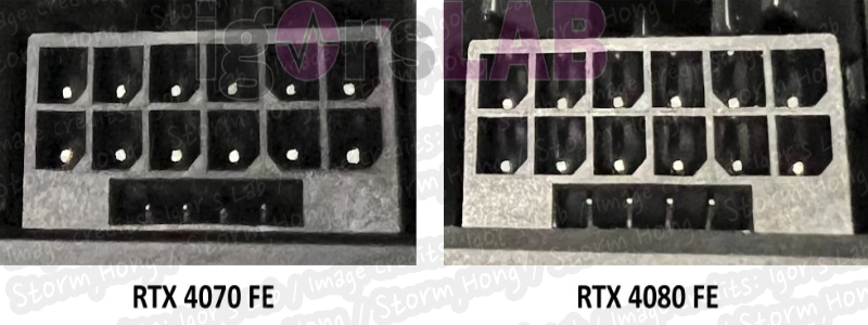 알려지고 있는 NVIDIA GeForce RTX 4070 FE 에 대해 igor's Lab 은 카드는 이미 최신 12V-2x6 핀 전원 커넥터를 사용하고 있을 수 있으며, 기본적으로 12핀 포트 하단에 있는 4개의 감지 핀에서 차이를 확인할 수 있는 것으로 알려졌습니다. 큰 차이점은 이전 CEM 5.0 사양에서는 4개의 감지 핀에 대해 0.45mm 오프셋이 있었지만, 새로운 CEM 5.1 사양에서는 1.7mm 내측 오프셋으로 수정되었다는 점입니다.