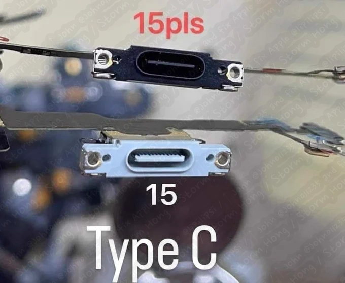 [ iPhone 15 Series 와 iPhone 15 Pro Series USB-C 커넥터 부품에 대한 유출 사진이 공개되며 정보가 나타났다? ]