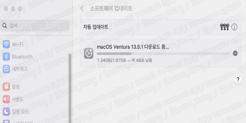 ↑ 기존 macOS Ventura 13.5.1 에서 설치 시작 시 실제로 위 사진처럼 1.87 GB 로 설치 용량이 늘어납니다. 따라서 설치가 덜되어 있는 분들은 더 클 수 있습니다. 따라서 macOS Ventura 13.5.1 업데이트 시에도 설치 공간은 예상치 보다 더 많이 필요할 수 있습니다.