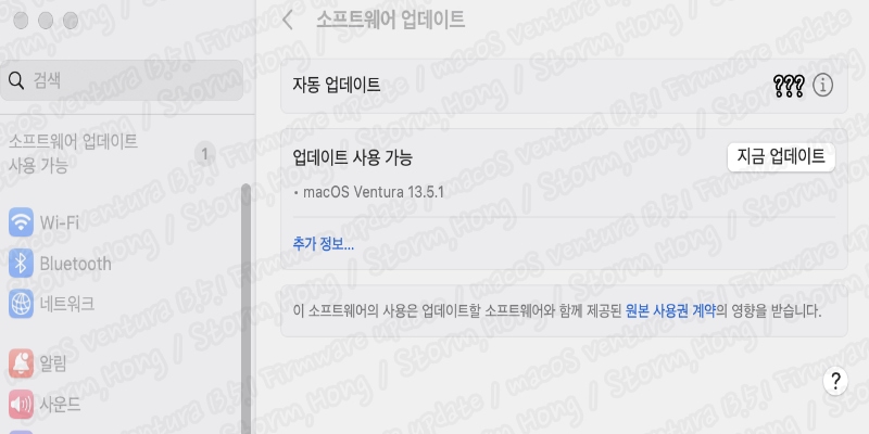 * 업데이트 macOS Venturs 13.5 가능 모델 : macOS Ventura 13.X 업데이트가 되어 있는 Mac Pro 2019 이후 모델, iMac Pro 2017 이후 모델 , Mac mini 는 2018 년 후반 이후 모델, MacBook Air 2018년 이후 모델, Macbook 일반 2017년 모델, MacBook Pro 2017년 이후 모델 Mac Studio 2022 모델