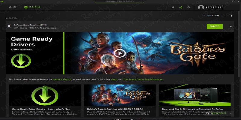 NVIDIA GeForce Game Ready Driver 536.99 WHQL 업데이트 Baldur's Gate 3 Gord 및 Texas Chain Saw Massacre 최적화 그 외 개선점은?