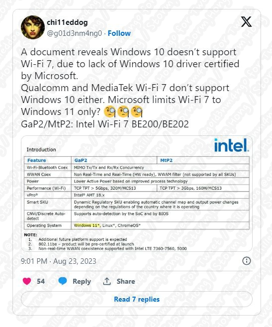 Wi-Fi 7, Windows 10 에서 지원되지 않는다?? 지원 OS 는 Windows 11 Linux 및 ChromeOS 에서만 작동??