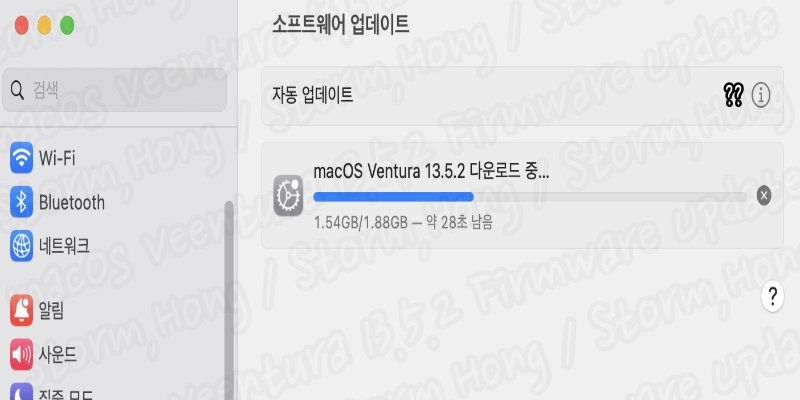 ↑ 기존 macOS Ventura 13.5.2 에서 설치 시작 시 실제로 위 사진처럼 1.88 GB 로 설치 용량이 늘어납니다. 따라서 설치가 덜되어 있는 분들은 더 클 수 있습니다. 따라서 macOS Ventura 13.5.2 업데이트 시에도 설치 공간은 예상치 보다 더 많이 필요할 수 있습니다.