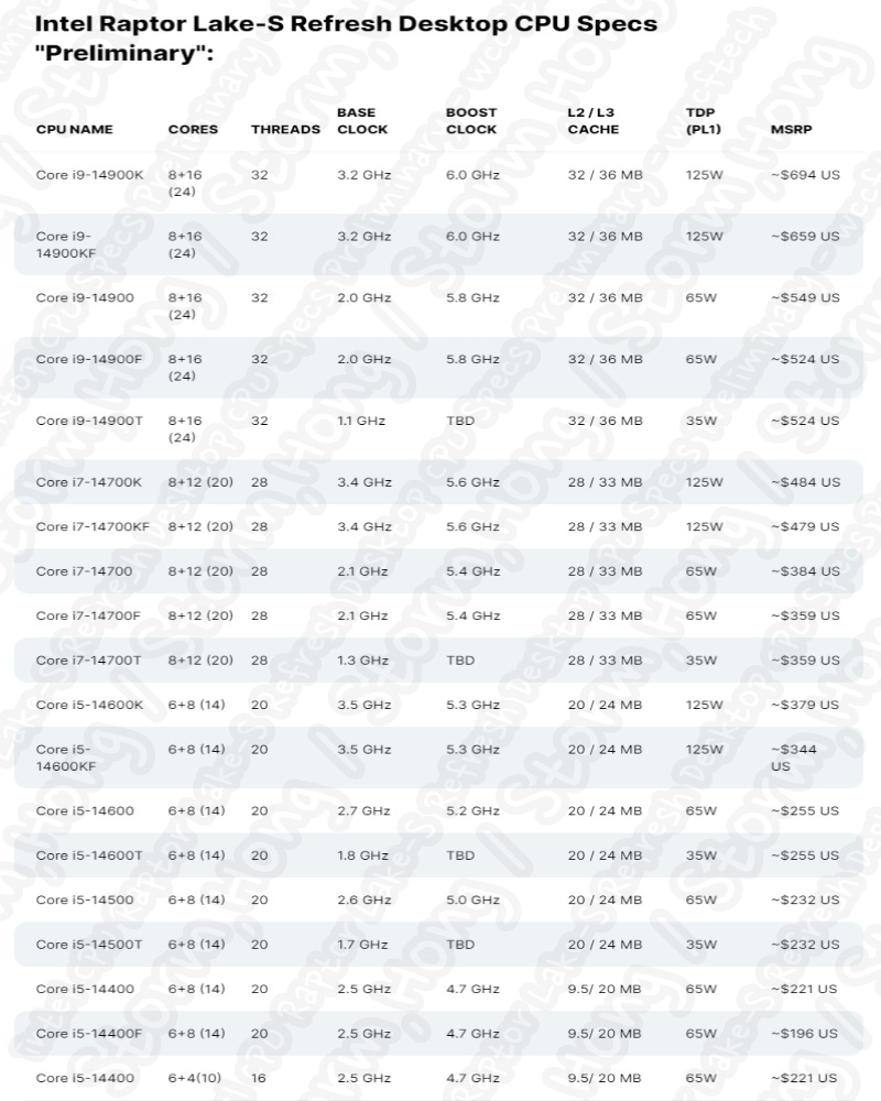 intel 은 다음 달 10월 14세대 '잠금해제' 코어 i9-14900K, 코어 i7-14700K & 코어 i5-14600K CPU를 출시할 것이라는 소문이 있습니다.