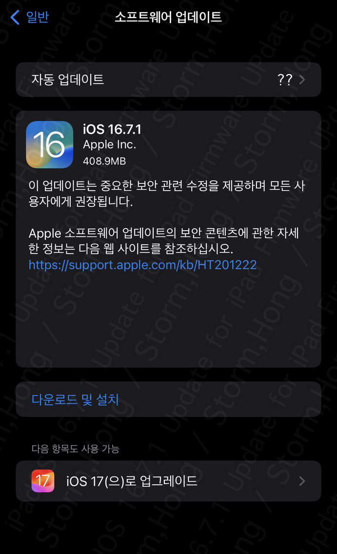 iOS 16.7.1 및 iPadOS 16.7.1 업데이트 내용은 무엇인가? - (iOS 17.0.3 / iPadOS 17.0.3 설치 불가 및 설치 안 한 제품 진행은?)