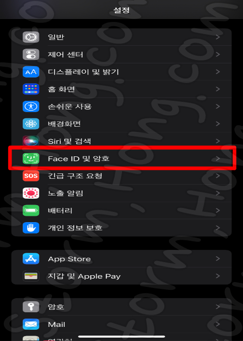 1. Face ID 및 암호를 눌러 줍니다.