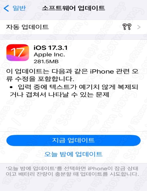 그럼 이번에 업데이트된 iOS 17.3.1 정식 버전의 내용을 살펴보겠습니다. [ iOS 17.3.1 업데이트 ]