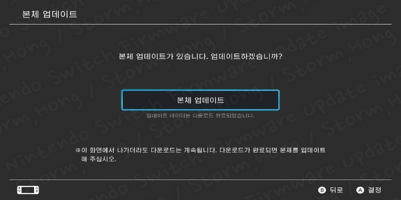 현재 Nintendo Switch 시스템 설정에서 이번 업데이트를 활성화하여 다운로드한 경우 시스템이 자동으로 다운로드하거나, 수동으로 업데이트 후 재부팅이 이루어지며, 업데이트가 완료됩니다.