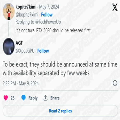 NVIDIA의 차세대 GeForce RTX 5090 및 RTX 5080 그래픽 카드는 동시에 공개될 것으로 예상, 예측, 루머, 소문이 나타났으며, 이는 출시 여부에 대해서 알 수 있는 결과이며, 몇 주 차이가 있을 것으로 보인다는 정보가 나타났습니다.