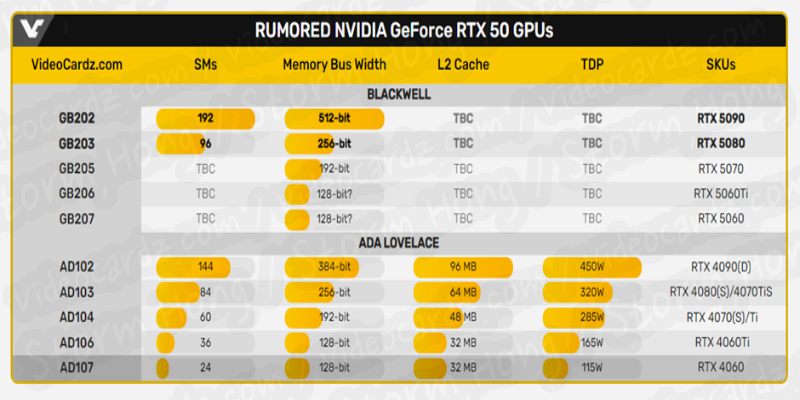 * NVIDIA GeForce RTX 50 "Blackwell" GPU 라인업 예측 사양 :