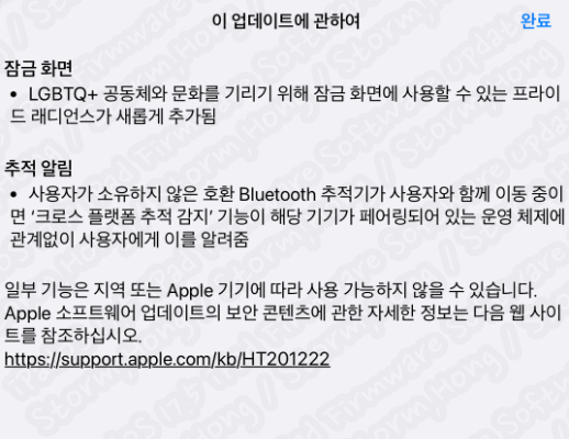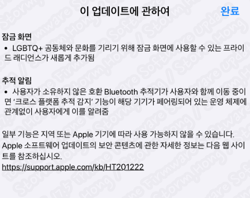 애플 보안 사이트 문서의 내용은 Apple은 고객 보호를 위해 보안 문제에 관한 조사를 마치고 패치 또는 출시 버전을 일반에 공개할 수 있을 때까지는 보안 문제를 공개하거나, 논의하거나, 확인해 주지 않습니다. 이 문서에는 최신 출시 버전이 나와 있습니다. 이를 통해 자신에 맞는 기기 업데이트 버전 설명 찾아보시기 바랍니다.