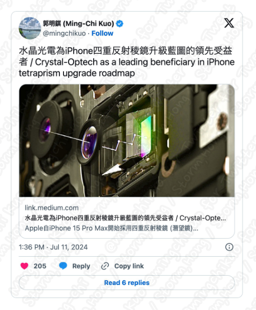 Apple, 테트라프리즘 잠망경 줌 렌즈 공급망 확대? iPhone 16 Pro , iPhone 16 Pro Max 모두 수용할 가능성
