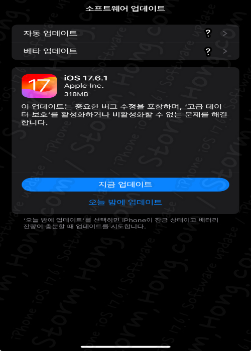 그럼 이번에 업데이트된 iOS 17.6.1 정식 버전의 내용을 살펴보겠습니다. [ iOS 17.6.1 업데이트 ]