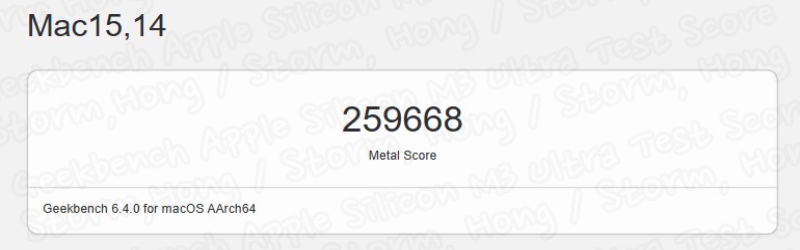 80 코어 GPU 가 장착된 Apple Silicon M3 Ultra Chipset 칩을 탑재한, 새로운 Mac Studio 에 대한 Geekbench 6 Bench Metal 의 점수는 259,668 을 기록했습니다. 이 테스트에 사용된 제품은 76 코어 GPU 가 장착된 Apple Silicon M2 Ultra Mac Studio 제품에서 기록한 222,582 점 보다 높은 점수를 기록했습니다. 이 정보가 사실이라는 전제하에 Apple Silicon M3 Ultra Mac Studio 는 Apple Silicon M2 Ultra Chip 보다 16% 더 빠른 그래픽 성능을 보여준다는 의미라는 결과입니다.