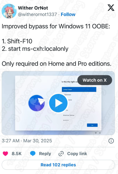 새롭게 등장한 방법은 Twitter 사용자 @witherornot1337 에 의해 알려졌으며, 이는 CMD 창에서 명령을 실행하기만 하면 되는 방식을 사용했습니다. 그 방법은 다음과 같습니다.