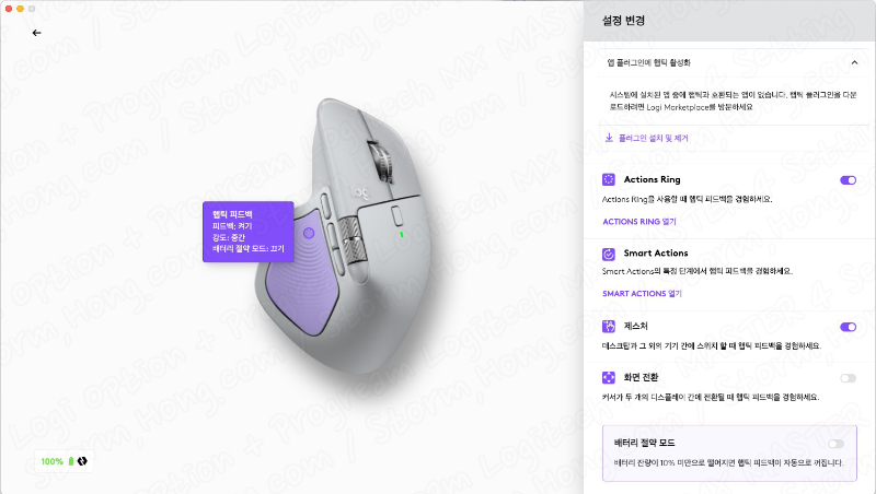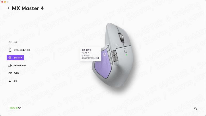 (Logitech MX MASTER 3S (로지텍 MX MASTER 3S) 에서는 Haptic FeedBack 진동이 작동하지 않으며,Logitech MX MASTER 4 (로지텍 MX MASTER 4) 에서 Haptic FeedBack 진동이 적용됩니다.)
