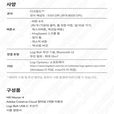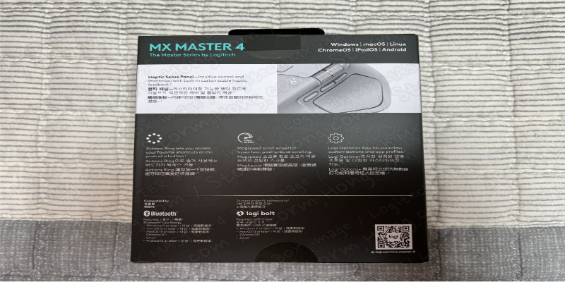 ※ 뒷면에는 자세하지는 않지만 Logitech MX MASTER 4 (로지텍 MX MASTER 4) 에 주요 강조 내용이 들어 있습니다.