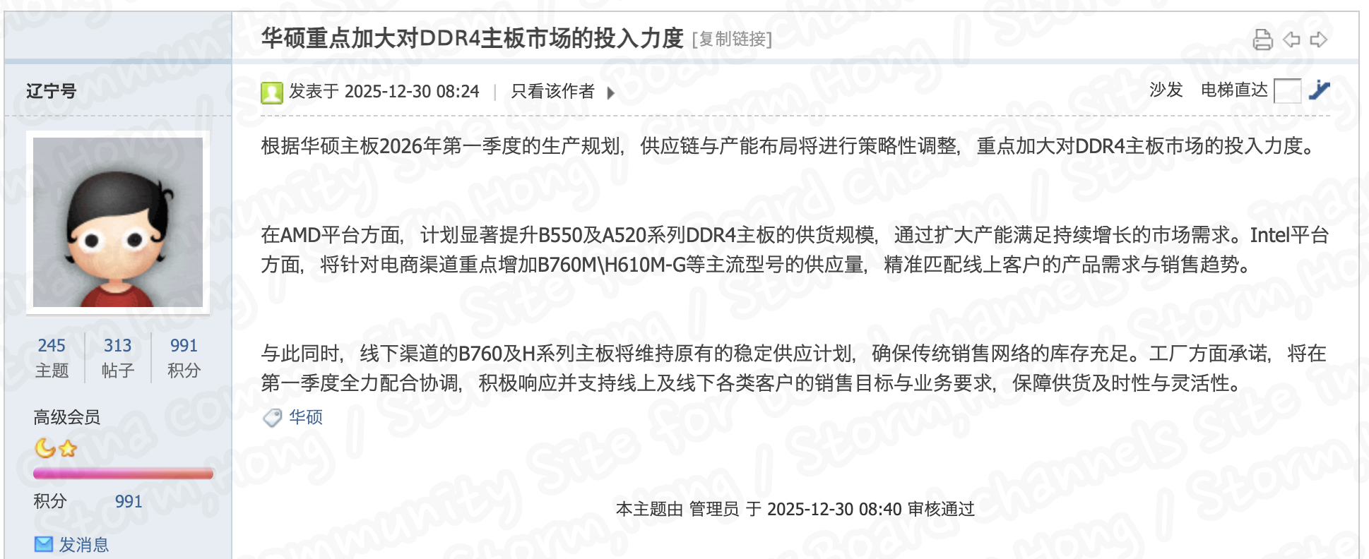 ASUS 는 2026년 1분기 메인보드 (Main Board) ,마더보드 생산 계획으로, ASUS 의 공급망과 생산 능력을 배분하여, 전략적 조정을 진행할 것으로 알려졌으며, 특히 DDR4 마더보드 시장에 대한 투자를 대폭 확대할 방침으로 알려졌습니다.
